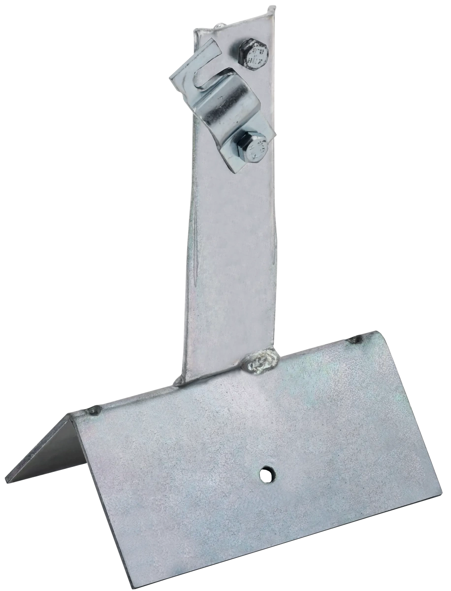 Описание Держатель проводника круглого для конька с болтовым зажимом широкий предназначен для закрепления прутка на коньке скатной кровли. Держатель крепится к кровле при помощи метизов. Зажим проводника происходит при помощи болтового соединения. Материал корпуса - сталь горячеоцинкованная.