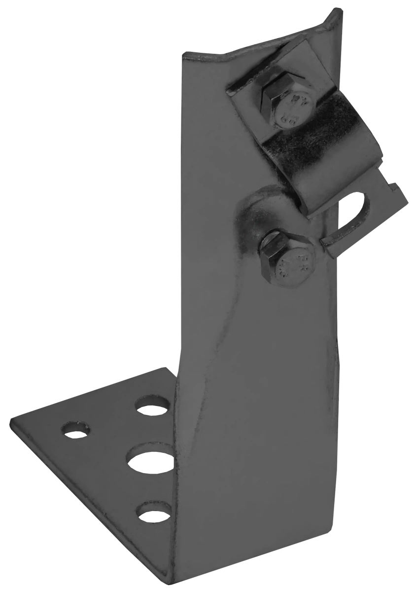 Описание Держатель угловой с болтовым зажимом предназначен для монтажа проводника на горизонтальные, вертикальные или наклонные поверхности. Монтируется на поверхности при помощи саморезов. Зажим проводника происходит при помощи болтового соединения. Материал корпуса - сталь с термодиффузионным цинковым покрытием.