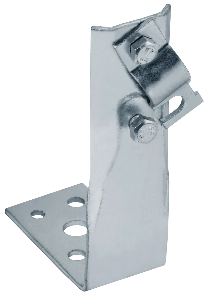 Описание Держатель угловой с болтовым зажимом предназначен для монтажа проводника на горизонтальные, вертикальные или наклонные поверхности. Монтируется на поверхности при помощи саморезов. Зажим проводника происходит при помощи болтового соединения. Материал корпуса - сталь горячеоцинкованная.
