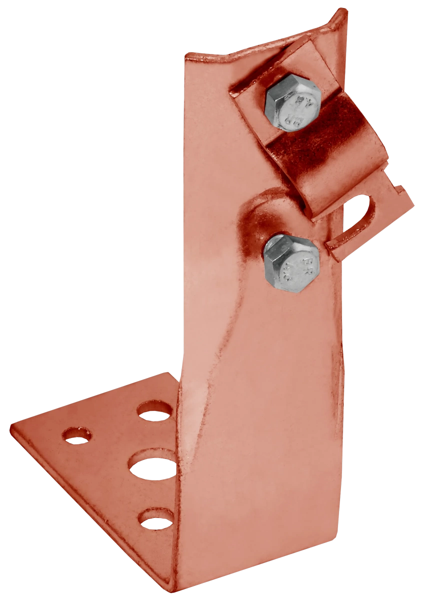 Описание Держатель угловой с болтовым зажимом предназначен для монтажа проводника на горизонтальные, вертикальные или наклонные поверхности. Монтируется на поверхности при помощи саморезов. Зажим проводника происходит при помощи болтового соединения. Материал корпуса - медь.