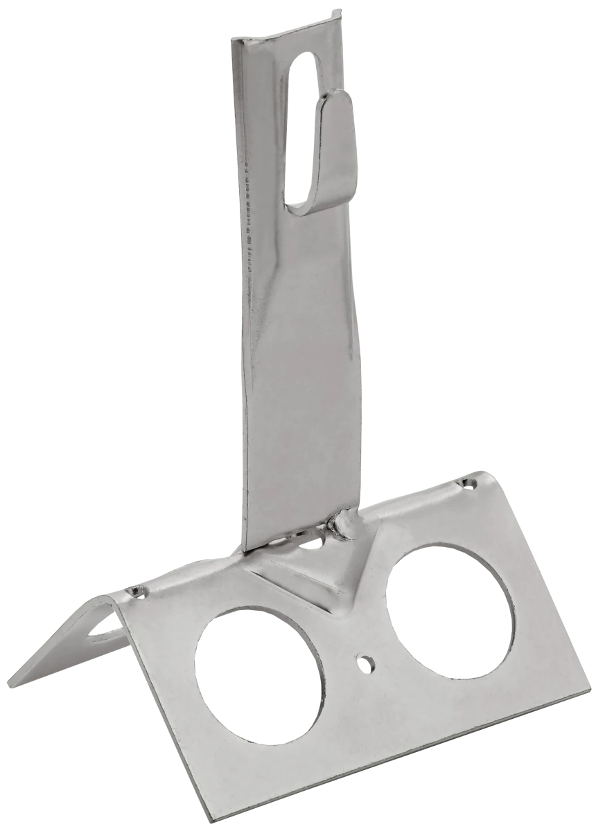 Описание Держатель проводника круглого для конька с безболтовым зажимом широкий предназначен для закрепления прутка на коньке скатной кровли. Зажим проводника происходит путем загибания язычка держателя. На коньке крепится при помощи метизов. Материал корпуса - нержавеющая сталь.