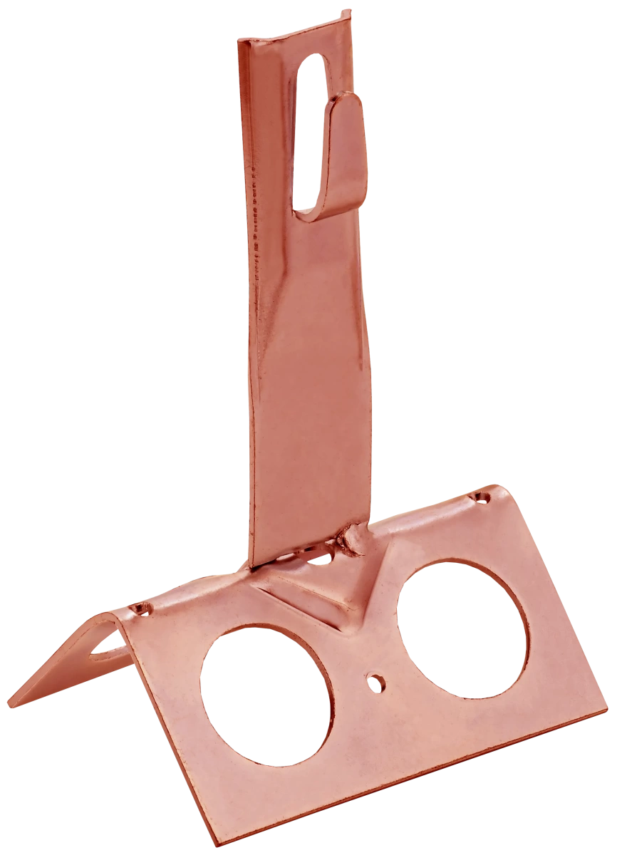Наименование в каталоге Держатель проводника круглого 6-8 мм для конька широкого h 100 мм медь
