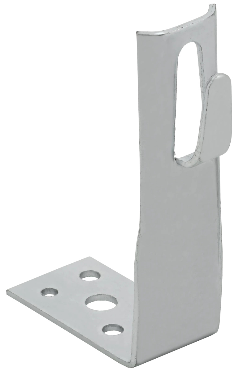 Описание Держатель угловой с безболтовым зажимом предназначен для монтажа проводника на горизонтальные, вертикальные или наклонные поверхности. Монтируется на поверхности при помощи саморезов. Зажим проводника происходит путём загибания язычка держателя. Материал корпуса - сталь с гальваническим цинковым покрытием.
