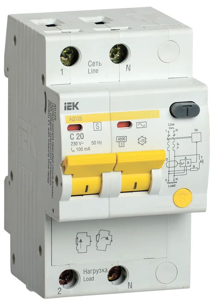 Выключатель автоматический дифференциальный АД12S 2Р 20А 100мА IEK (ИЭК) MAD13-2-020-C-100
