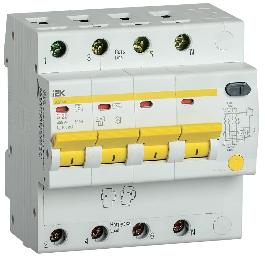 Выключатель автоматический дифференциальный АД14S 4Р 20А 100мА IEK (ИЭК) MAD13-4-020-C-100