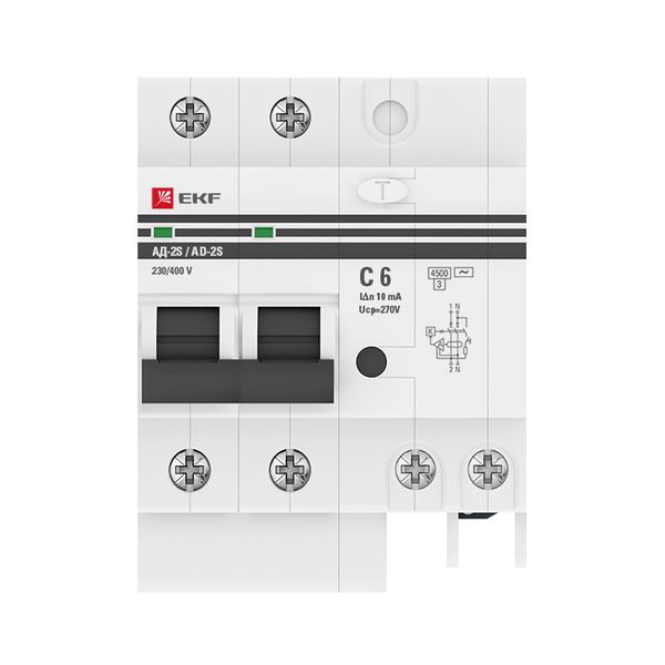 Дифференциальный автомат АД-2 6А/10мА (х-ка C, АС, электронный, защита 270В) 4,5кА PROxima EKF DA2-06-10-pro
