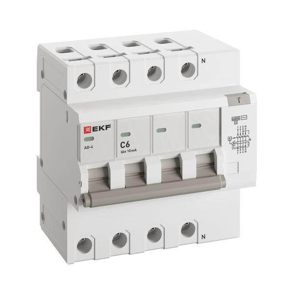 Дифференциальный автомат АД-4 6А/10мА (х-ка C, АС, электронный) 6кА EKF PROxima