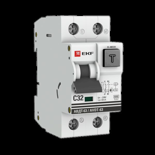 Дифференциальный автомат АВДТ-63 32А/30мА (характеристика C, эл-мех, тип АС) 6кА EKF PROxima