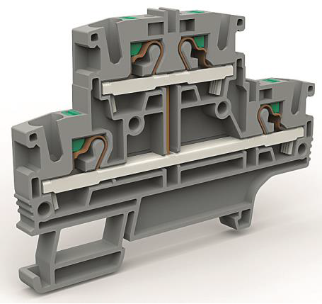 Описание Двухуровневые клеммы предназначены для коммутации проводников сечением 4 мм2 и позволяют объединить два яруса в один. Они устанавливаются на рейку OMEGA и обеспечивают быстрый монтаж и извлечение проводов с помощью кнопки. Клеммы имеют защиту от прикосновения к токоведущим частям.