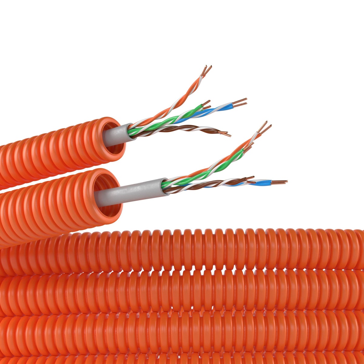 Электротруба ПНД гибкая гофрированная д. 16 мм, цвет оранжевый, с кабелем витая пара 5EU/UTP нг(А)-HF, 50 м