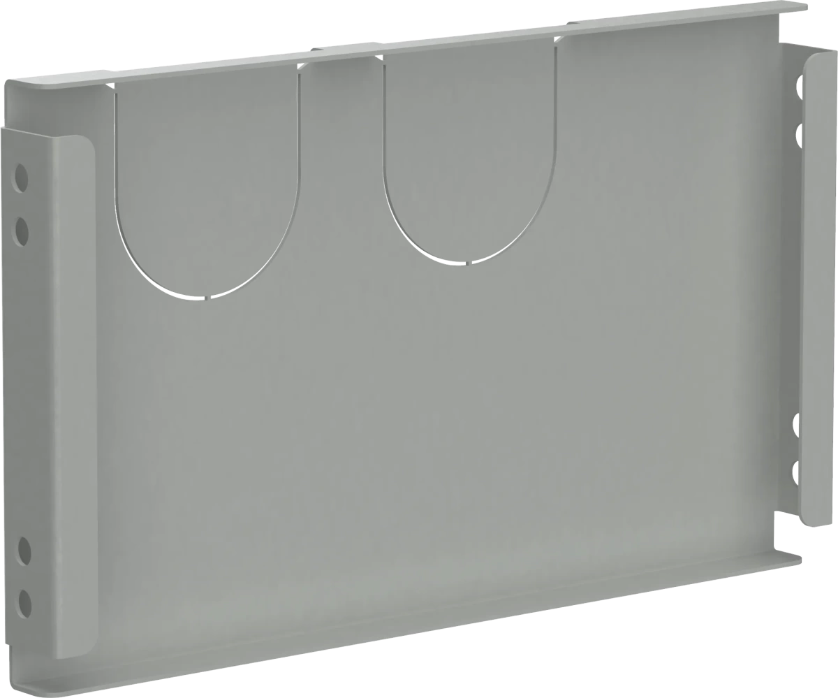 Описание Предназначена для отделения клемм подключения нагрузки к функциональному блоку, ограничения доступа к токоведущим частям НКУ при открытой двери шкафа, организации секционирования по форме 4В, препятствия распространения дуги между функциональными блоками, защиты от случайного прикосновения обсуживающего персонала к токоведущим частям электроустановки. Предусмотрены насечки для быстрого демонтажа кабельных проходов (окон).