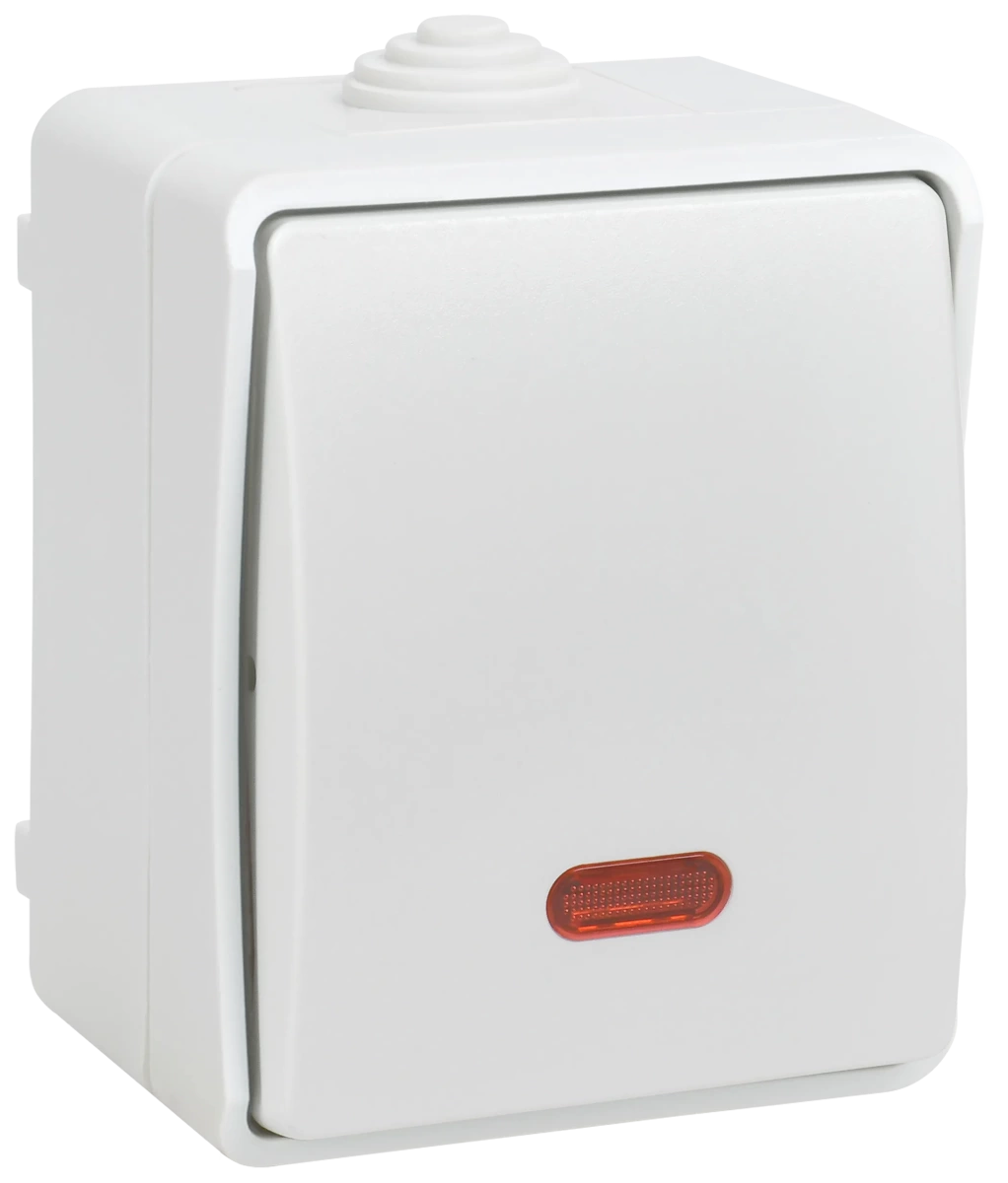 FORS Выключатель 1-клавишный проходной с индикацией для открытой установки 10А IP54 ВС20-1-1-ФБ белый IEK (ИЭК) EVS11-K01-10-54-DC
