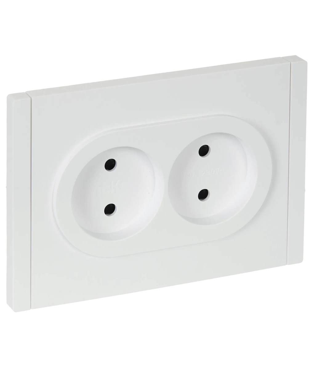 Наименование в каталоге FORTE&PIANO Розетка 2-местная без заземления с защитными шторками безвинтовое крепление 10А FP225 белый IEK