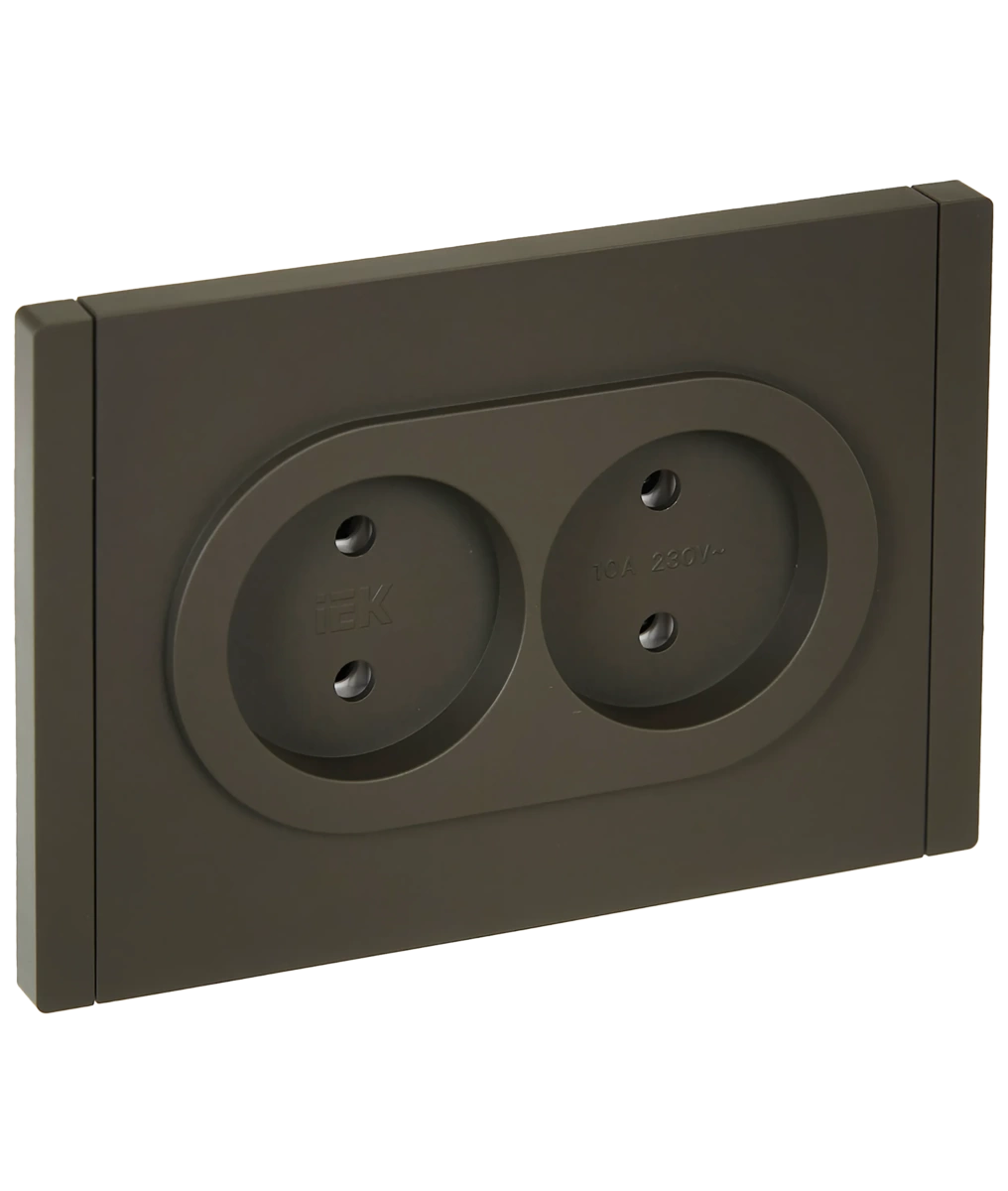 Наименование в каталоге FORTE&PIANO Розетка 2-местная без заземления без защитных шторок безвинтовое крепление 10А FP326 серый IEK