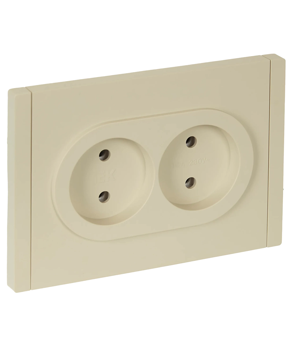 Наименование в каталоге FORTE&PIANO Розетка 2-местная без заземления без защитных шторок безвинтовое крепление 10А FP426 ваниль IEK