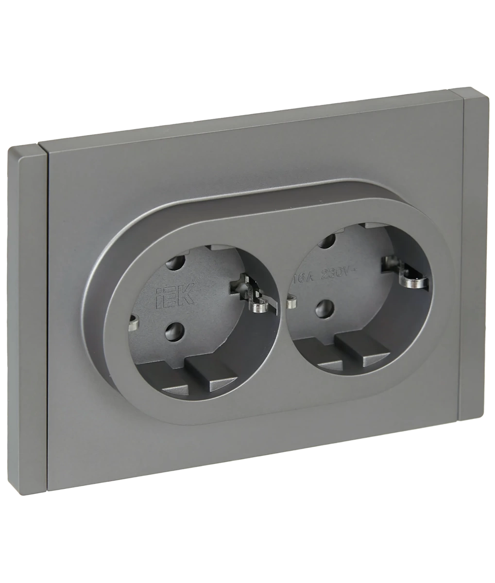 FORTE&PIANO Розетка 2-местная с заземлением без защитных шторок безвинтовое крепление 16А FP524 сталь IEK IEK (ИЭК) FP-R21-16-1-K46