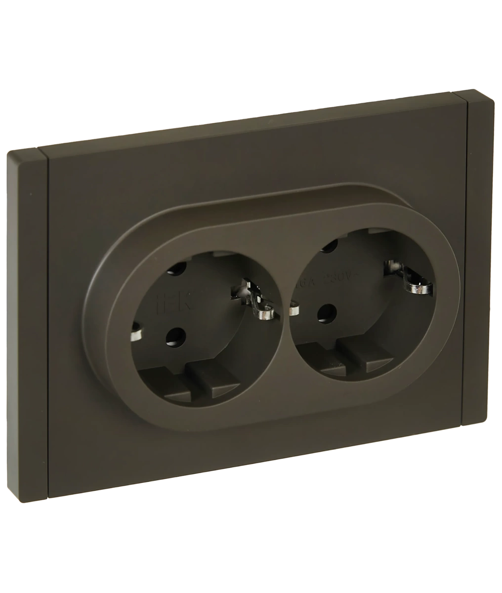 Наименование в каталоге FORTE&PIANO Розетка 2-местная с заземлением с защитными шторками безвинтовое крепление 16А FP323 серый IEK