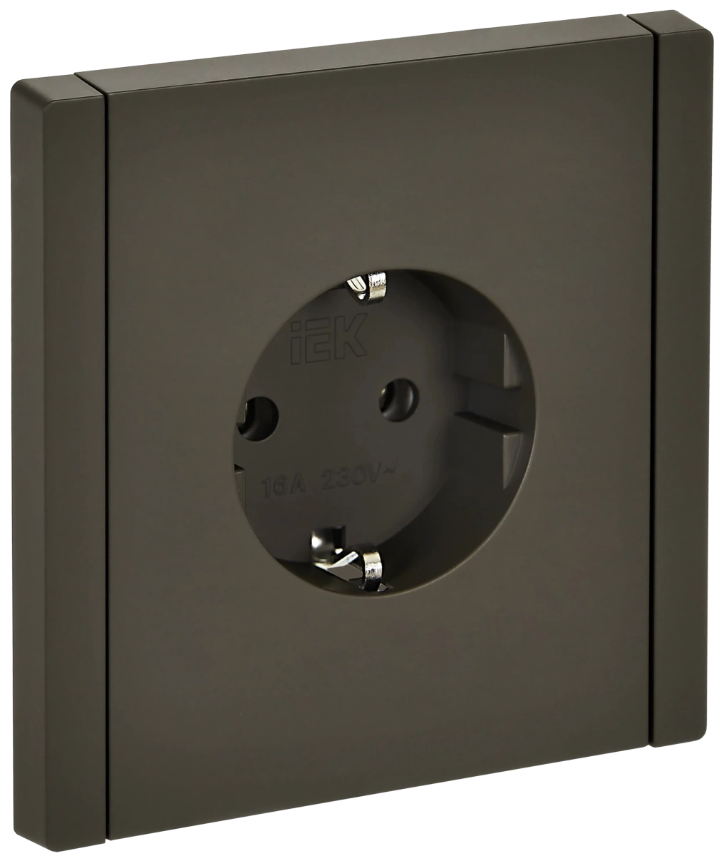 Наименование в каталоге FORTE&PIANO Розетка 1-местная с заземлением без защитных шторок безвинтовое крепление 16А FP314 серый IEK