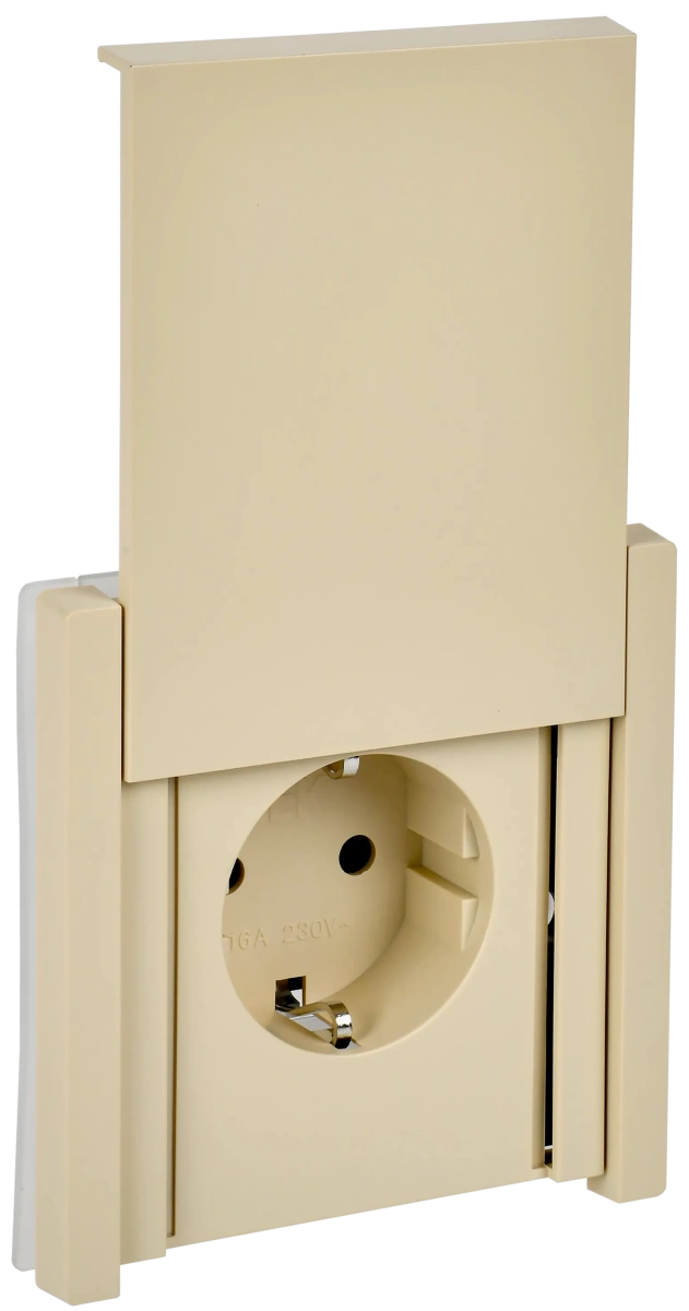 FORTE&PIANO Розетка 1-местная с заземлением с защитными шторками и крышкой винтовое крепление 16А IP44 FP421 ваниль IEK IEK (ИЭК) FP-R16-16-44-K10
