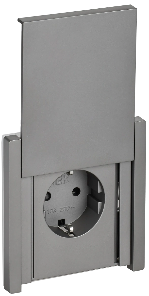 FORTE&PIANO Розетка 1-местная с заземлением с защитными шторками и крышкой винтовое крепление 16А IP44 FP521 сталь IEK IEK (ИЭК) FP-R16-16-44-K46