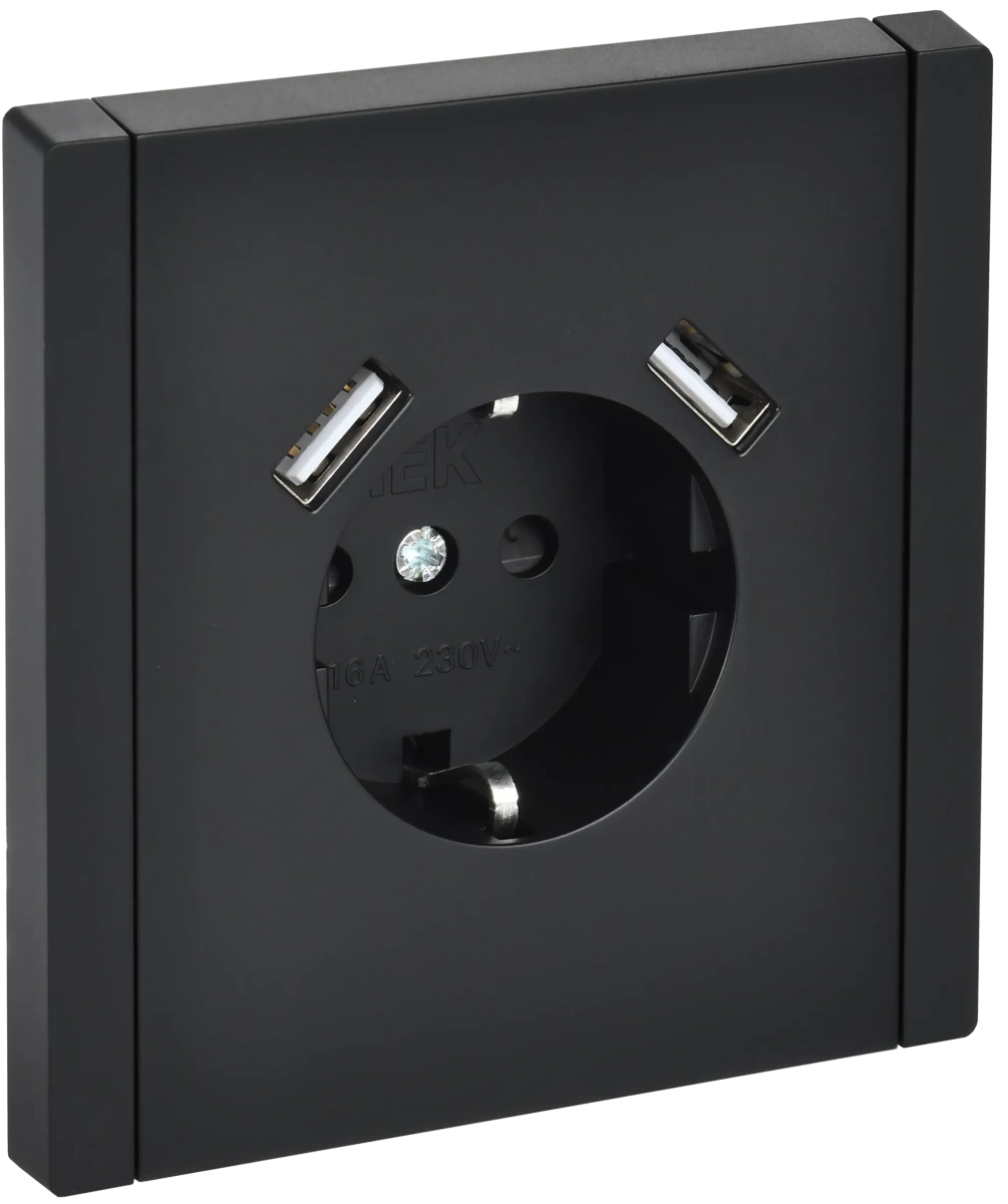 FORTE&PIANO Розетка 1-местная с заземлением с защитными шторками винтовое крепление 16А USB A+A 3,1А FP145 черный IEK IEK (ИЭК) FP-R14-16-U21-D31-K02
