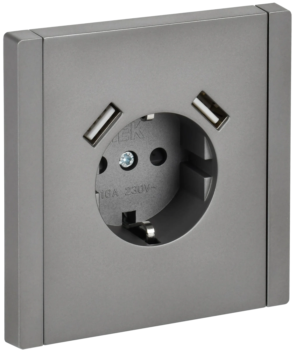 FORTE&PIANO Розетка 1-местная с заземлением с защитными шторками винтовое крепление 16А USB A+A 3,1А FP545 сталь IEK IEK (ИЭК) FP-R14-16-U21-D31-K46