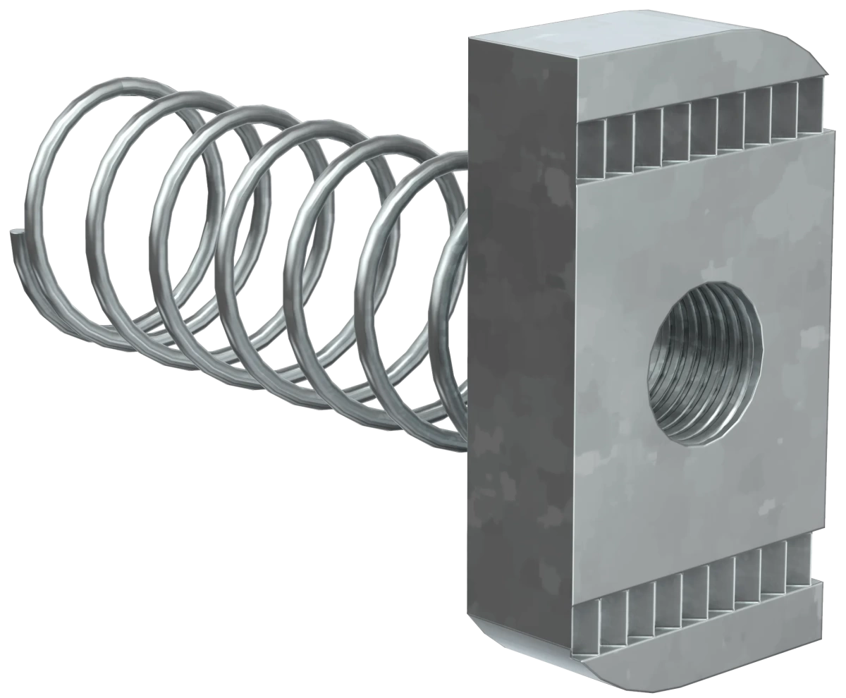 Описание Гайка канальная с удлиненной пружиной предназначена для крепления элементов STRUT-системы между собой, а также кабельных лотков к STRUT-консолям.Используется с профилем сечения 41х41.