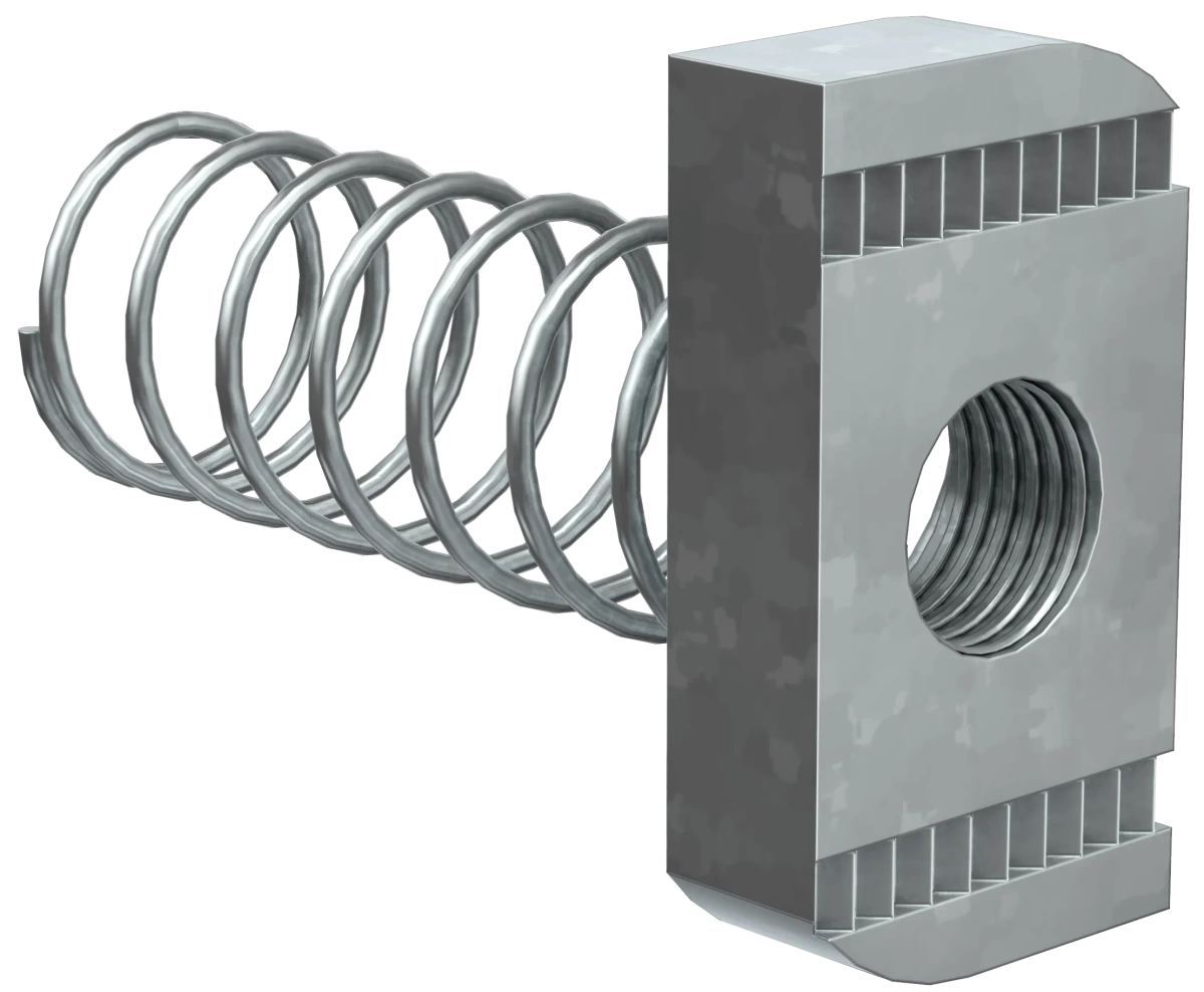Описание Гайка канальная с удлиненной пружиной предназначена для крепления элементов STRUT-системы между собой, а также кабельных лотков к STRUT-консолям.Используется с профилем сечения 41х41.