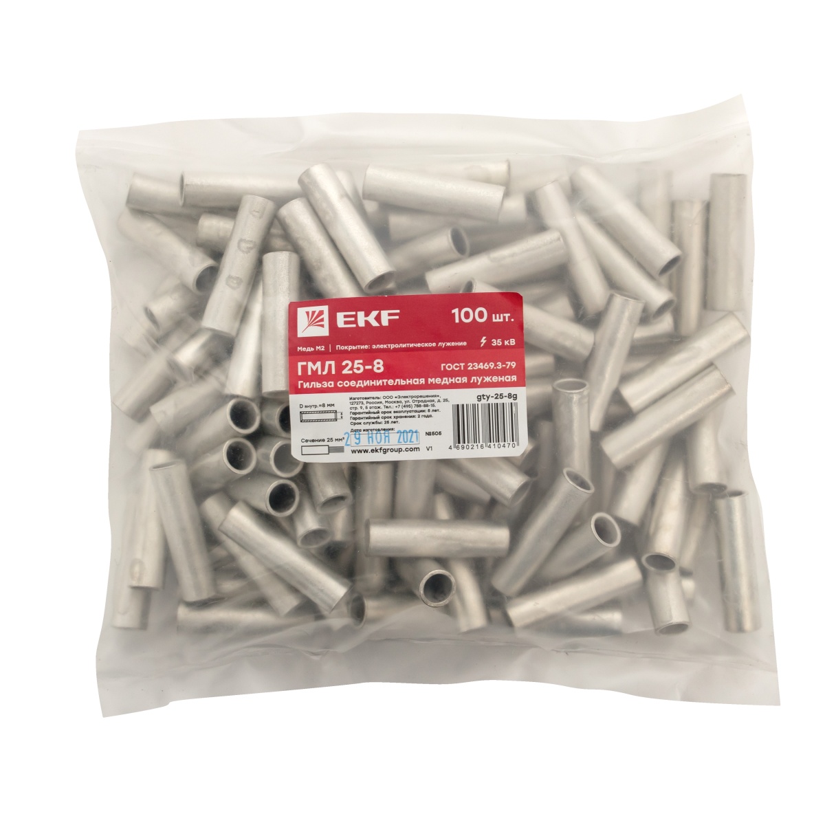 Наименование в каталоге Гильза соединительная медная луженая ГМЛ 25-8 ГОСТ (2шт.) EKF PROxima