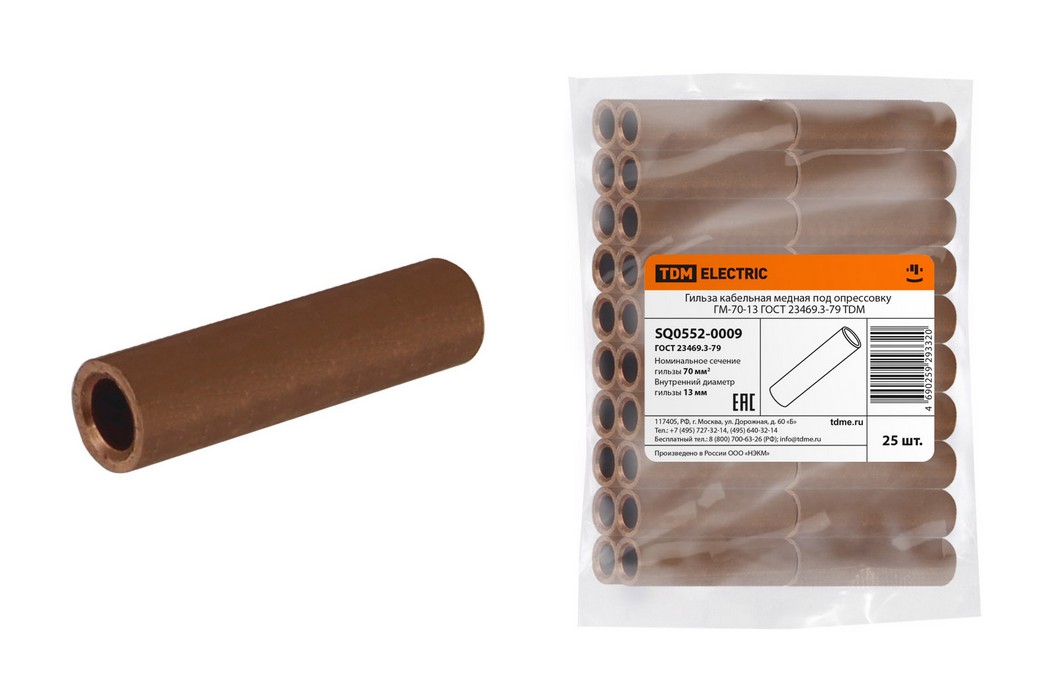 Гильза кабельная медная ГМ-70-13 ГОСТ 23469.3-79 TDM