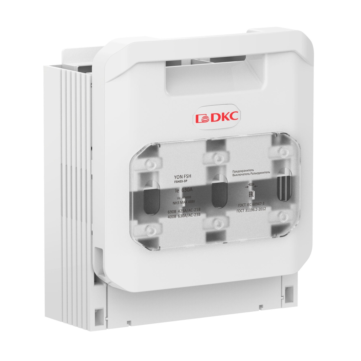 Полные технические характеристики Предохранитель Выключатель Разъединитель Горизонтальный 630А 3P крепление на монтажную плату DKC (ДКС) FSH03-3P