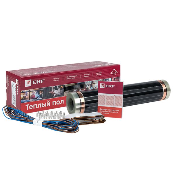 Описание Пленочный теплый пол EKF применяется для `сухого` монтажа без стяжки не только при капитальном ремонте, но и при косметическом. Толщина пленки -0,338 мм. Обеспечивает быстрый и легкий монтаж. Идеально подходит для укладки под ламинат, паркетную доску, мягкое напольное покрытие: линолеум, ковролин. Инфракрасный пленочный теплый пол состоит из следующих элементов: полосы углеродного материала шириной около 1,5 см соединены между собой при помощи медных шин с серебряным покрытием, которые и проводят электрический ток. Нагревательный элемент заламинирован с двух сторон плотным полимером, который не задерживает инфракрасное излучение и обеспечивает отличную защиту от попадания влаги, пробоев и возгорания.