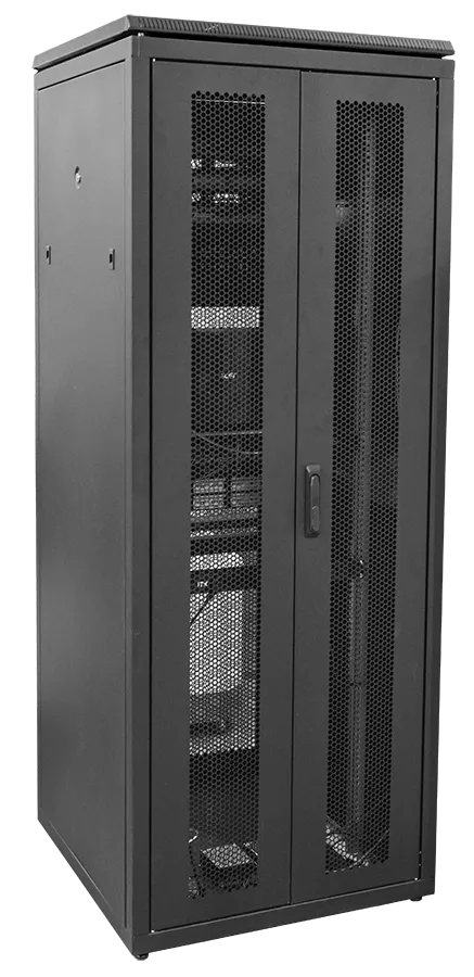 Наименование в каталоге Шкаф напольный 42U 800х600мм дверь передняя перфорированная задняя распашная перфорированная черный RAL9005