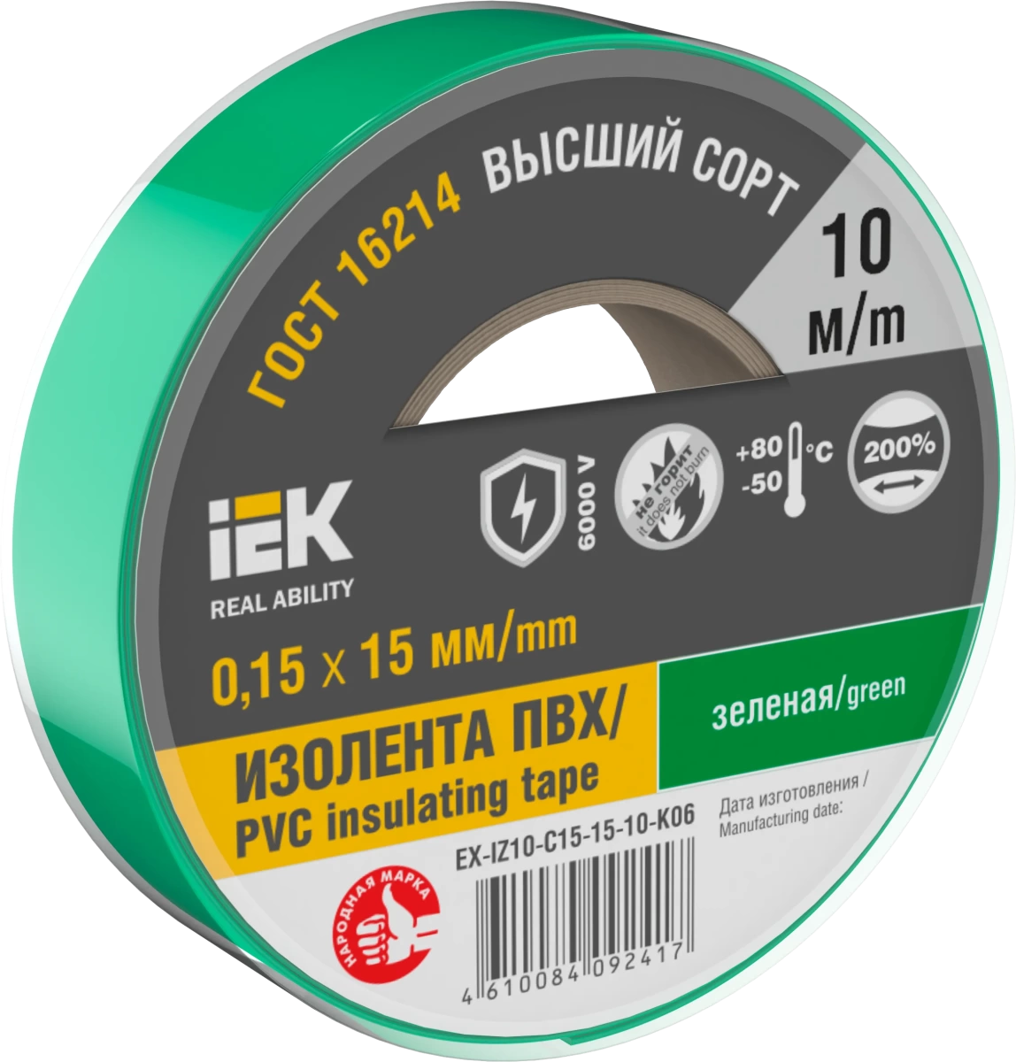Полные технические характеристики Изолента 0.15х15мм зеленая 10м IEK (ИЭК) EX-IZ10-C15-15-10-K06