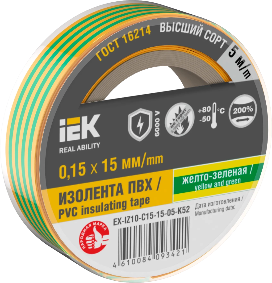 Изолента 0.15х15мм желто-зеленая 5м IEK (ИЭК) EX-IZ10-C15-15-05-K52