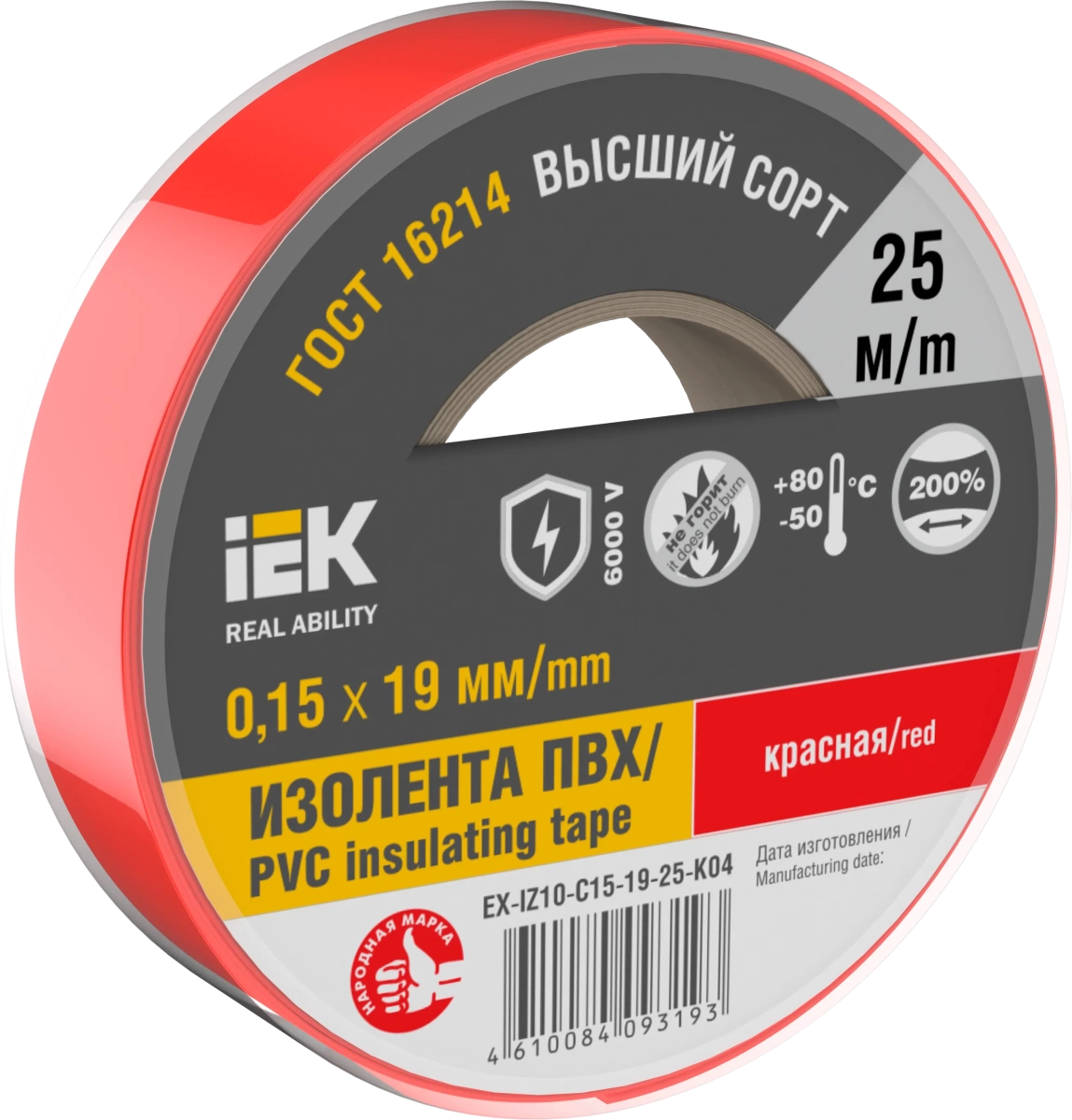 Изолента 0.15х19мм красная 25м IEK (ИЭК) EX-IZ10-C15-19-25-K04