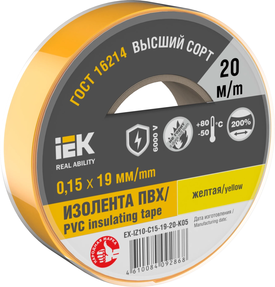 Изолента 0.15х19мм желтая 20м IEK (ИЭК) EX-IZ10-C15-19-20-K05