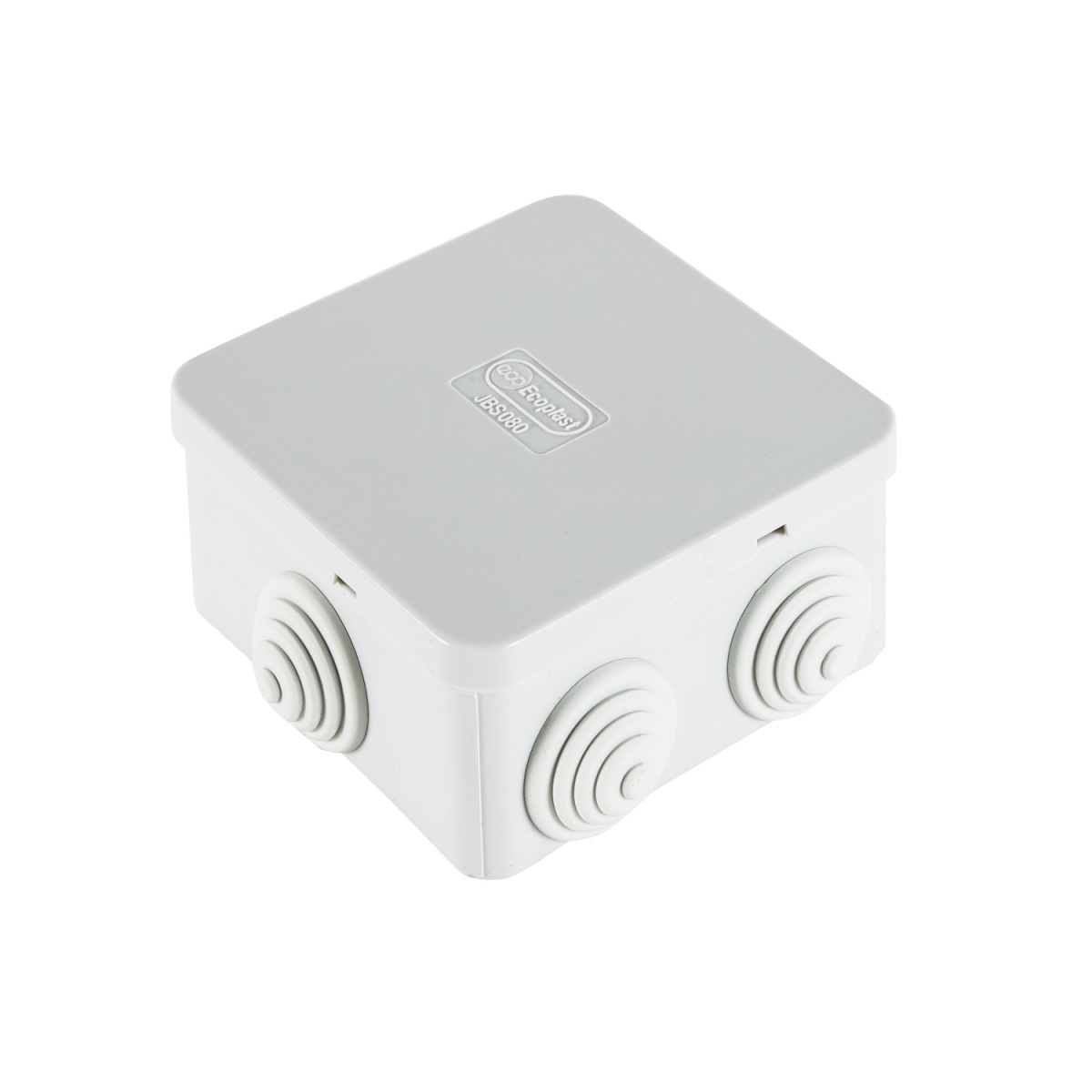 Наименование в каталоге JBS080 Коробка распределительная о/п, для монтажного пистолета 85х85х50, без галогена, 6 вых., IP44, подходит для монтаж. Пистолета Экопласт