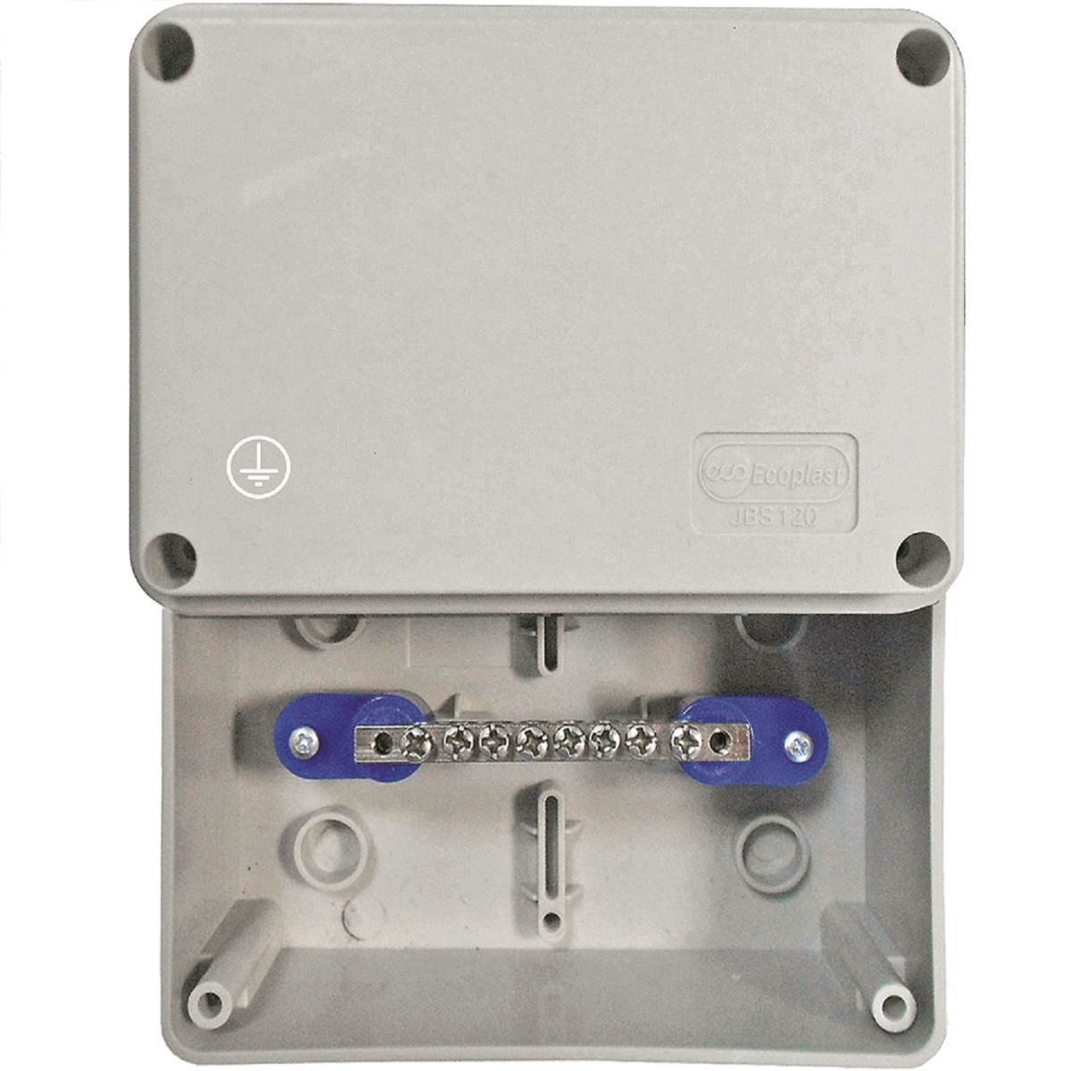 Полные технические характеристики JBS120 Коробка уравнивания потенциалов (КУП) 6х9мм, 8 зажимов, 63А, на 2-х изоляторах, о/п,120х80х50мм, 6 вых., IP55 Экопласт Ecoplast 44208KP