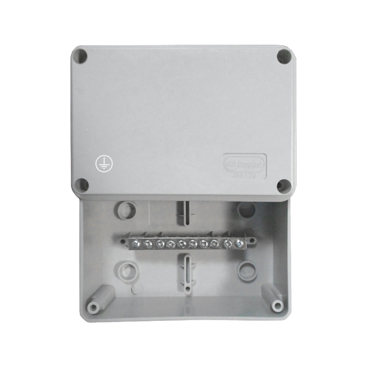 Полные технические характеристики JBS120 Коробка уравнивания потенциалов (КУП) 6х9мм, 8 зажимов, 63А, о/п, 120х80х50мм, 6 вых., IP55 Экопласт Ecoplast 44008KP