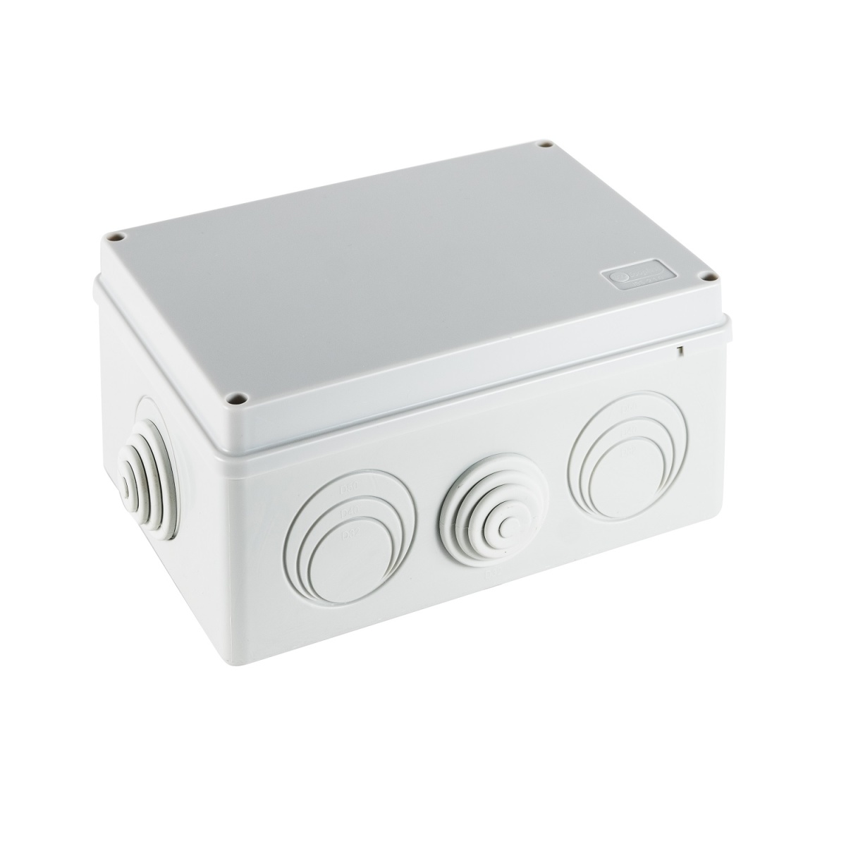 JBS210 Коробка распределительная о/п, 210х150х100мм 8 вых., 4 втулки D32мм, 6 вводов D50мм, IP55 цвет серый Экопласт