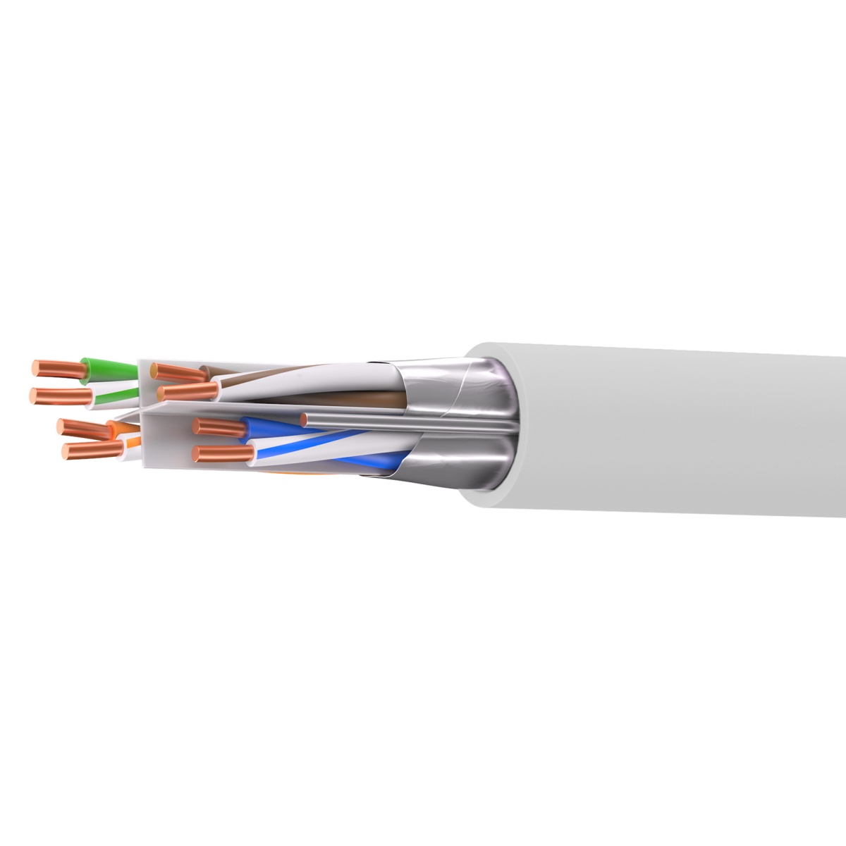 Кабель витая пара кат. 6 экранированный F/UTP, 4 пары, нг(А)-HF, для внешней/внутренней прокладки, серый, катушка 305 м