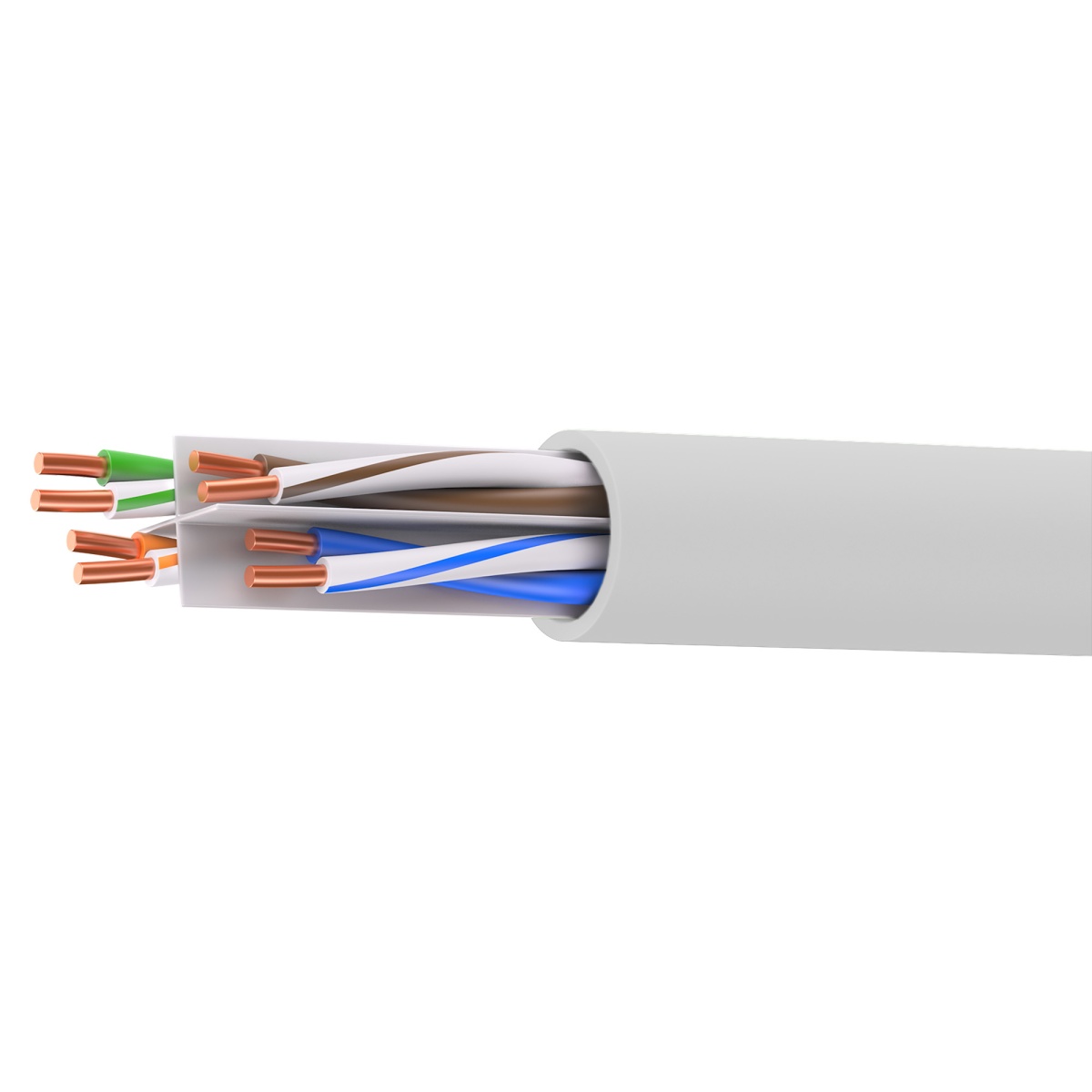 Кабель витая пара кат. 6 неэкранированный U/UTP, 4 пары, нг(А)-HF, для внешней/внутренней прокладки, серый, катушка 305 м
