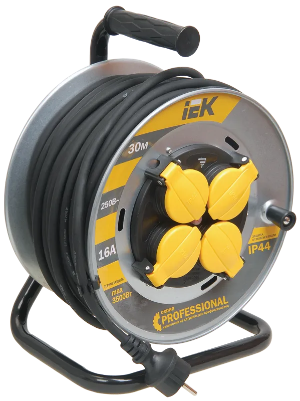 Удлинитель силовой 4 розетки шнур 30м КГ 3x2.5 УК30 с термозащитой IP44 IEK (ИЭК) WKP17-16-04-30-44