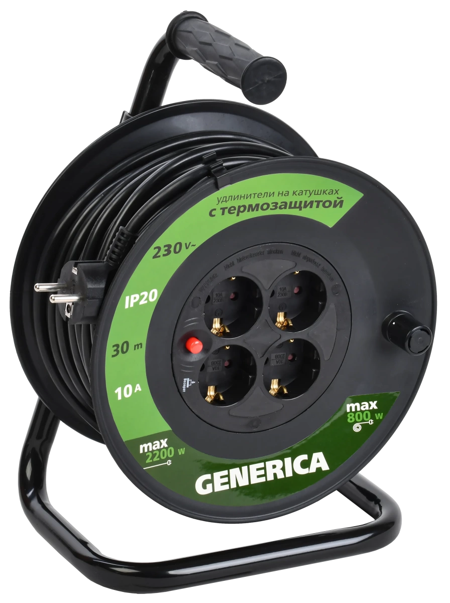 Наименование в каталоге Удлинитель силовой УК30 с термозащитой 4 места 2P+PE/30м 3х1.0мм2 GENERICA