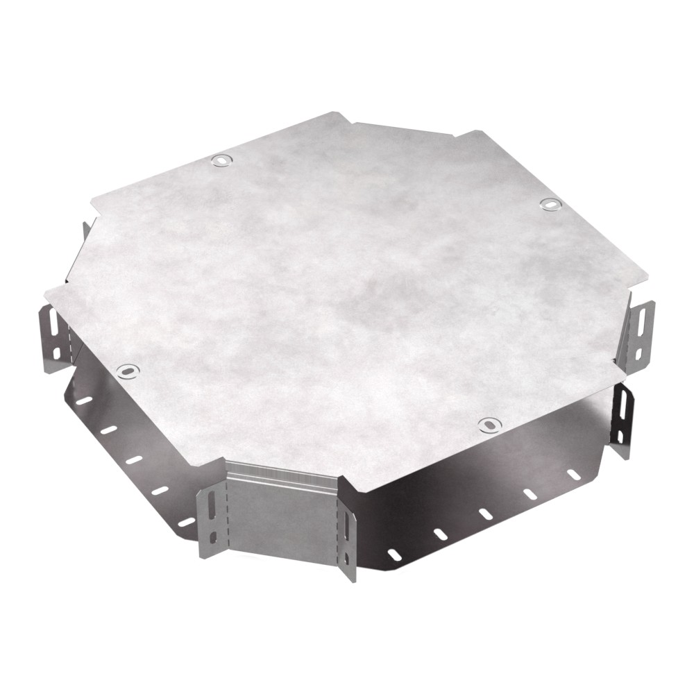 Описание Аксессуары изготовленные из стали с защитным покрытием по методу Сендзимира - это изделия, на которых защитное цинковое покрытие было нанесено на листовую сталь перед изготовлением. Толщина защитного покрытия варьируется от 10 до 22мкм. Климатическое исполнение изделий УХЛ2, что предусматривают эксплуатацию в помещении и под навесом, при температуре эксплуатации от -80 до +150С. Ответвитель X-образный предназначен для разветвления кабельных трасс в горизонтальном направлении, для перфорированных и глухих лотков. В комплект входит крышка.