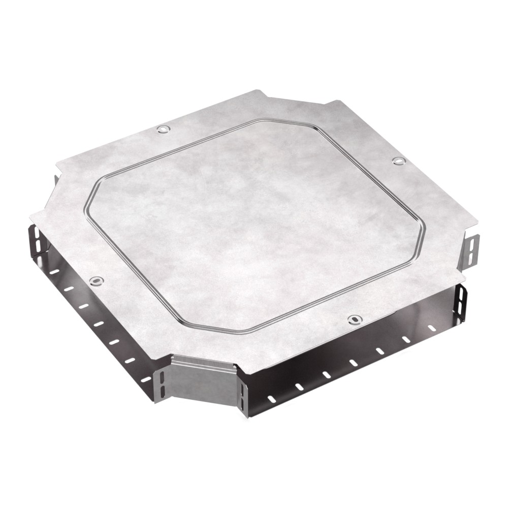 Описание Аксессуары изготовленные из стали с защитным покрытием по методу Сендзимира - это изделия, на которых защитное цинковое покрытие было нанесено на листовую сталь перед изготовлением. Толщина защитного покрытия варьируется от 10 до 22мкм. Климатическое исполнение изделий УХЛ2, что предусматривают эксплуатацию в помещении и под навесом, при температуре эксплуатации от -80 до +150С. Ответвитель X-образный предназначен для разветвления кабельных трасс в горизонтальном направлении, для перфорированных и глухих лотков. В комплект входит крышка.
