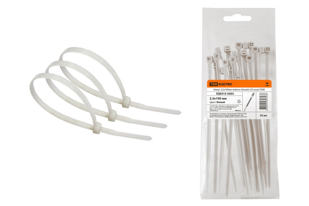 Хомут 2,5х100мм нейлон (белый) (25 штук) TDM ELECTRIC SQ0515-0303