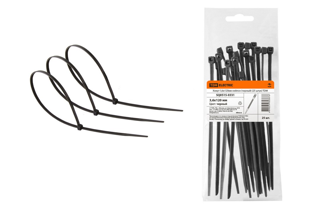 Хомут 3,6х120мм нейлон (черный) (25 штук) TDM ELECTRIC SQ0515-0331
