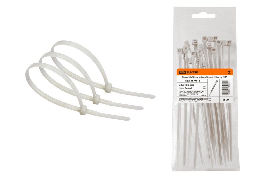 Хомут 3,6х180мм нейлон (белый) (25 штук) TDM ELECTRIC SQ0515-0312